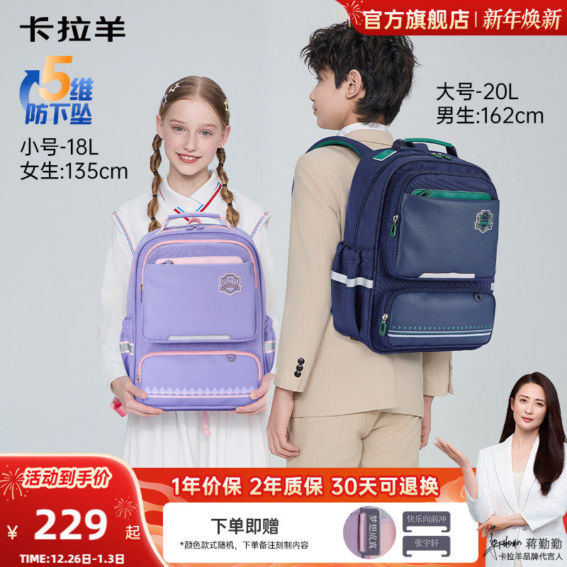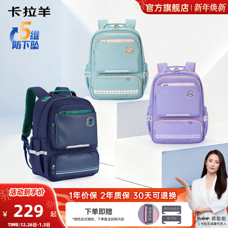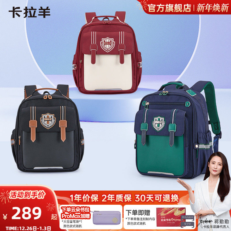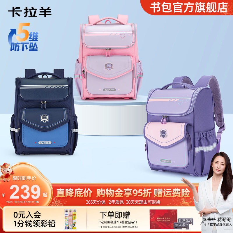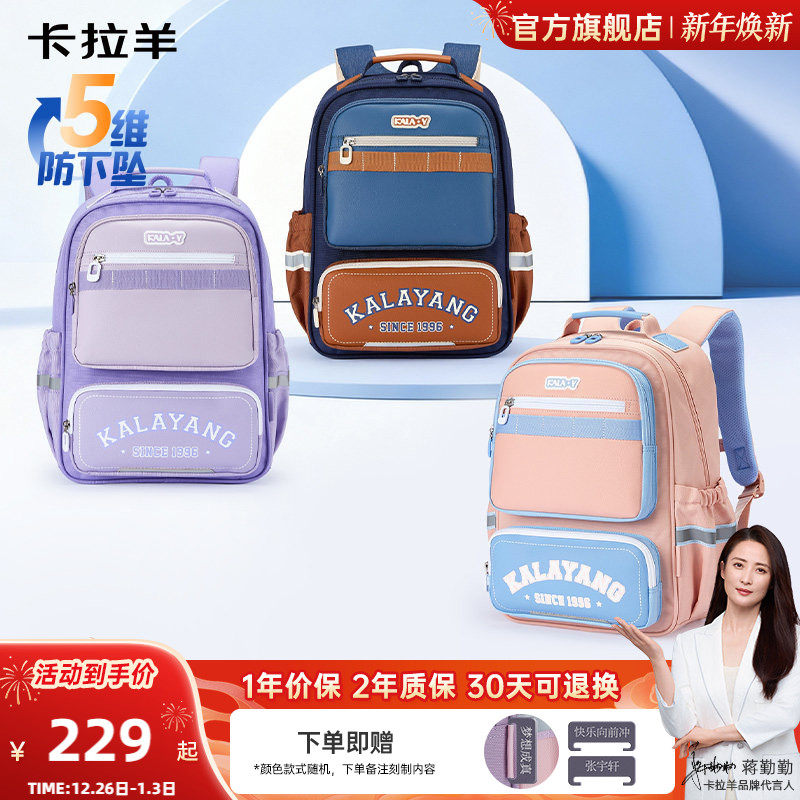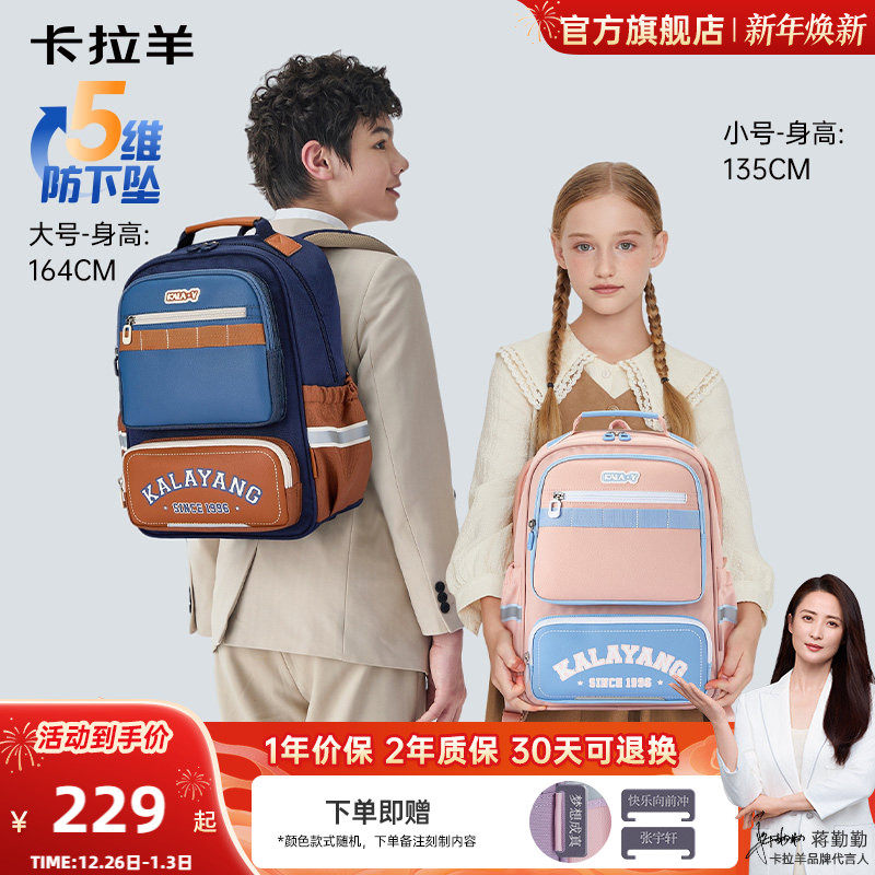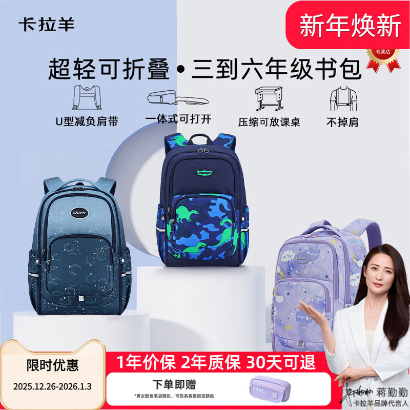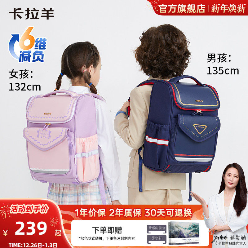 【蒋勤勤代言】卡拉羊1-4-6年级小学生减负防下坠大嘴书包女新款幼升小儿童双肩包男大容量多隔层背包防泼水