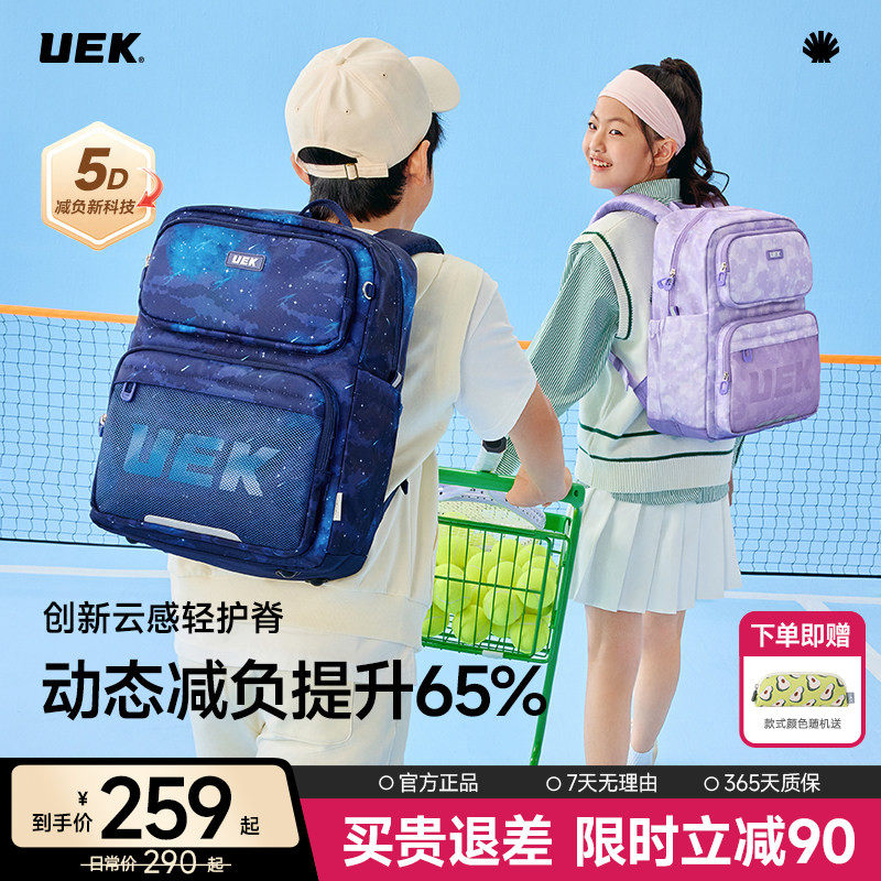 uek优壳儿童书包女生超轻减负护脊小学生大容量双肩包男孩4-6年级