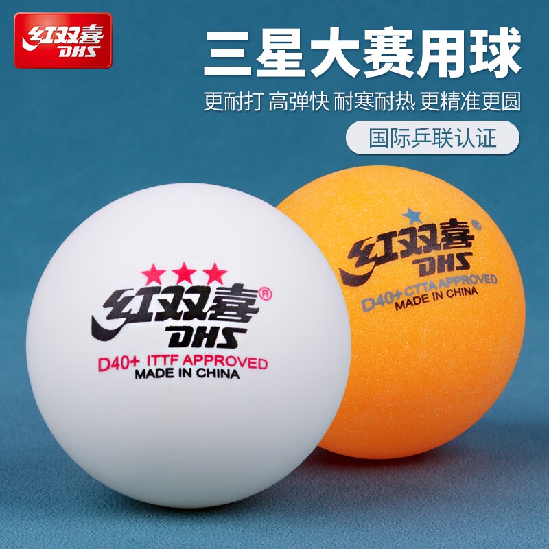 红双喜乒乓球三星专业比赛赛顶40+一星级训练室内家用抽奖兵乓球