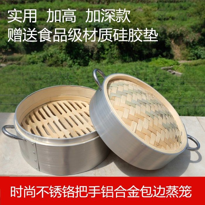 家用竹蒸笼 铝合金包边竹笼屉 2层竹制 蒸笼 不锈钢蒸笼 蒸菜笼格
