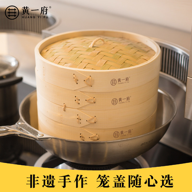 黄一府蒸笼竹制家用不锈钢竹编蒸架商用加深竹蒸屉小笼包馒头笼屉