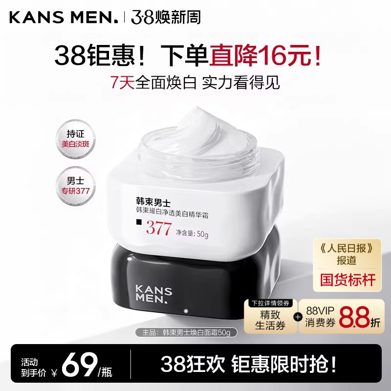 【377官方旗舰店正品】美白面膜淡斑祛斑霜护肤品烟酰胺精华去黄