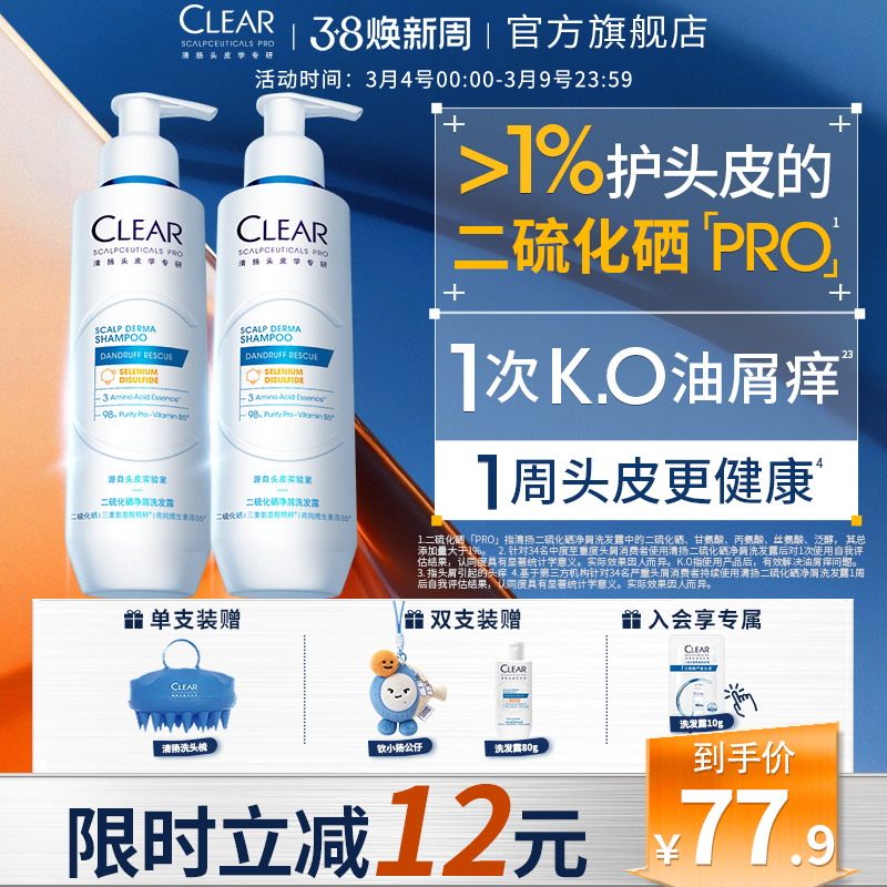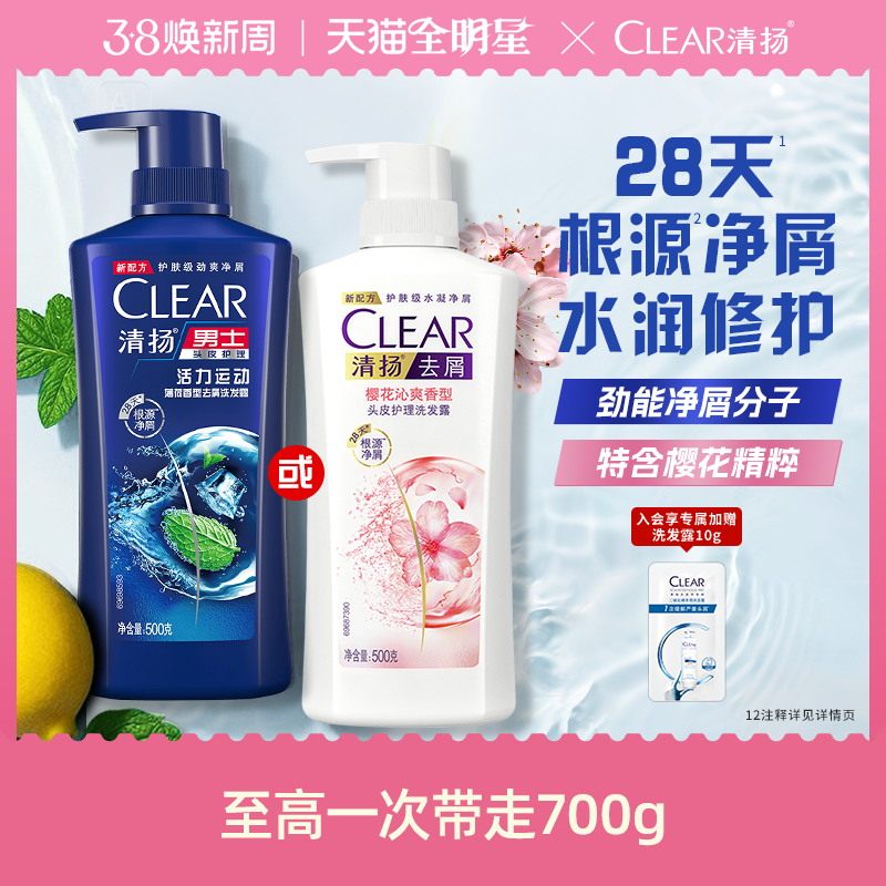 CLEAR清扬洗发水止痒去屑洗头膏去头屑官方正品680g/900g