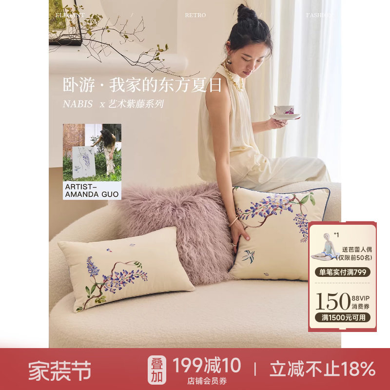 M.life 新中式客厅沙发绣花抱枕靠垫抱枕套含芯卧室床头靠垫腰枕