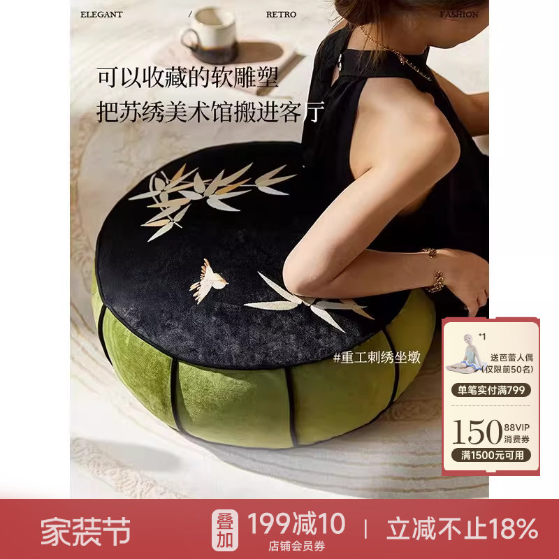 蜡笔派巴山竹夜坐墩新中式可拆洗靠垫客厅沙发搁脚凳多功能软凳L