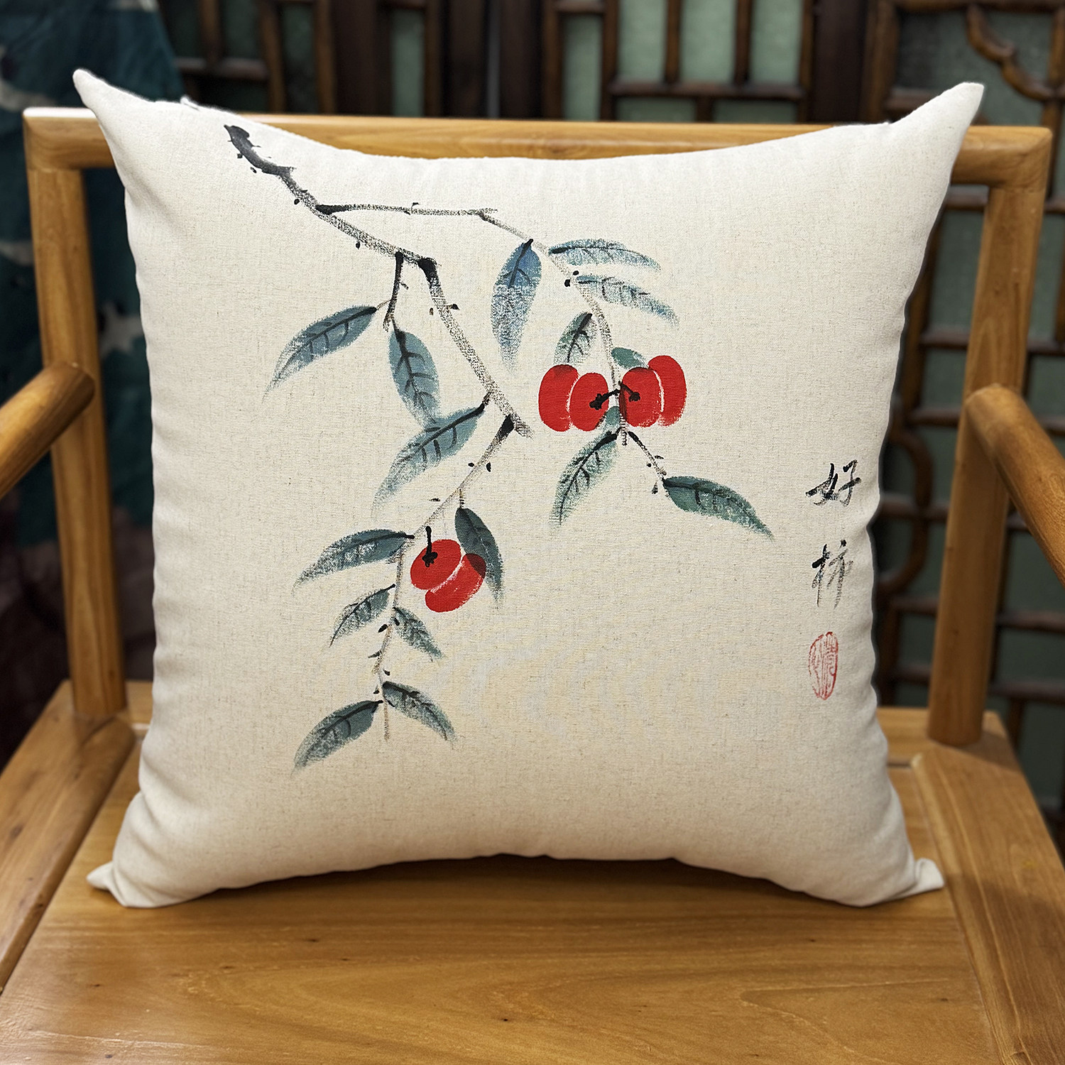 中国风柿柿如意抱枕客厅书房圈椅靠垫办公室茶室暖居中式靠枕含芯