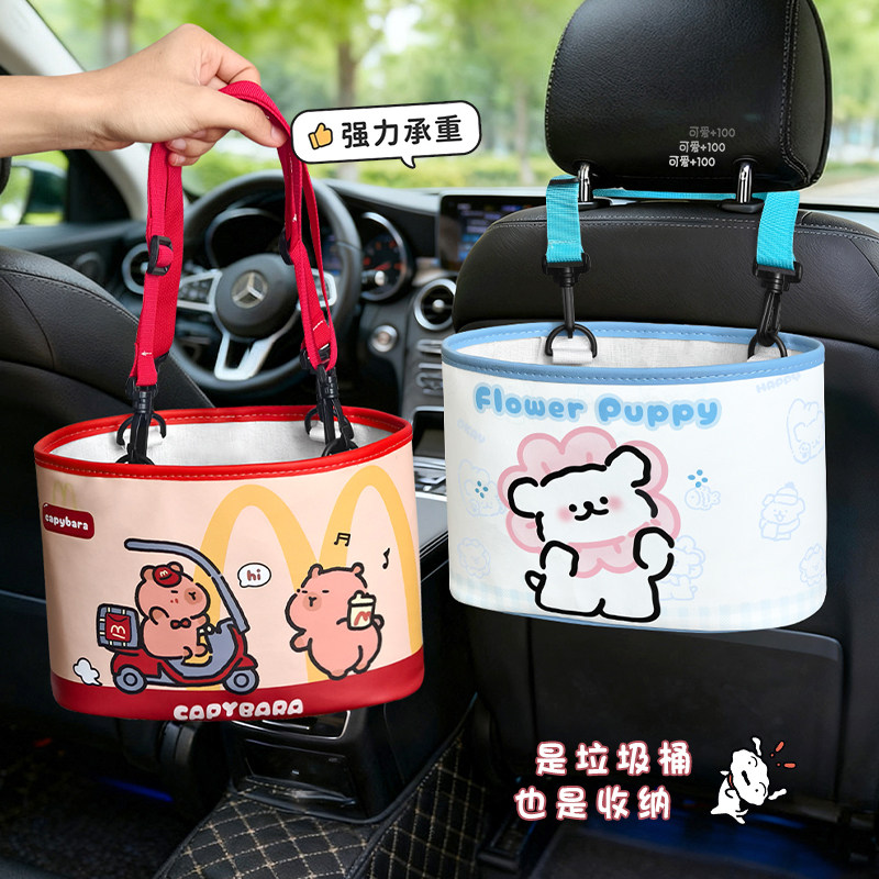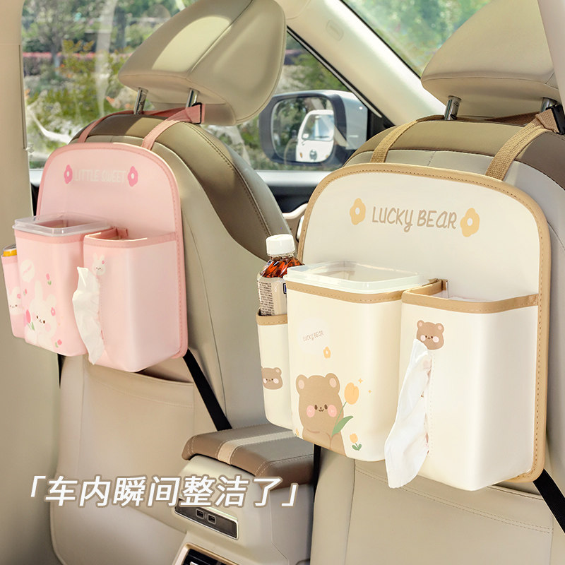 汽车椅背收纳袋车载多功能挂袋卡通车内纸巾盒储物后排置物垃圾桶