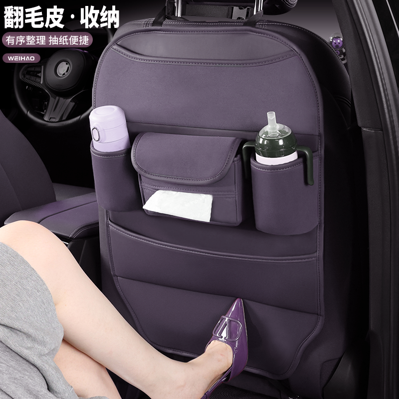 汽车椅背收纳袋车载挂袋翻毛皮座椅后背后排后座置物收纳盒储物袋