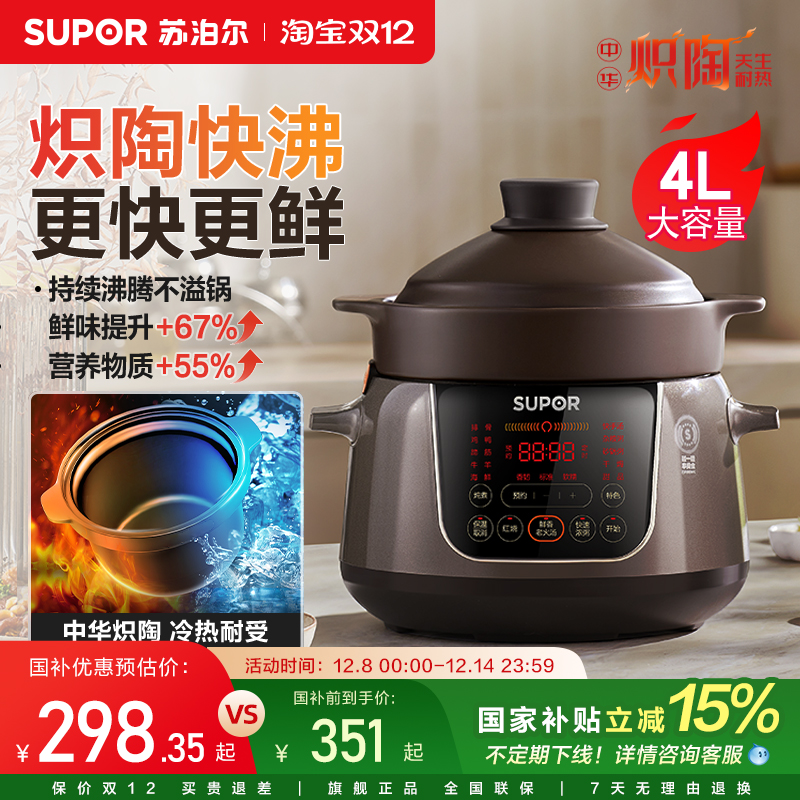 苏泊尔快炖电炖锅煲汤锅紫砂电砂锅煲汤陶瓷炖汤自动大容量可预约