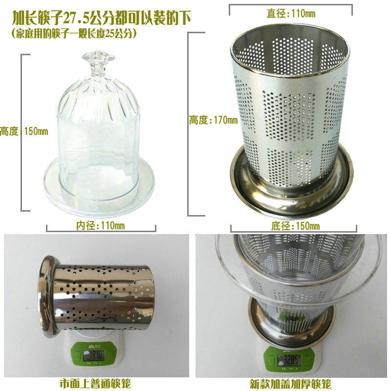 加高304不锈钢筷筒筷笼壁挂墙筷子筒带盖子防尘筷子笼厨房收纳盒