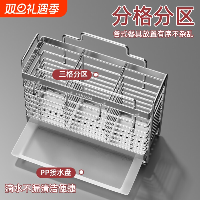 304不锈钢筷子筒厨房可壁挂沥水笼勺子筷子家用免打孔收纳盒筷筒
