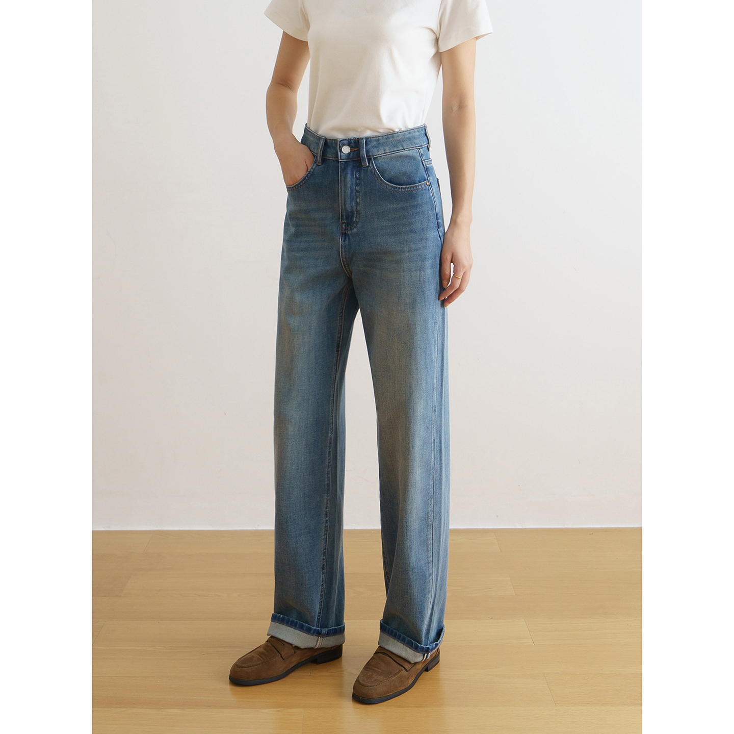 HM女装牛仔裤2025秋季新款通勤长裤直筒宽松水洗阔腿裤1222670