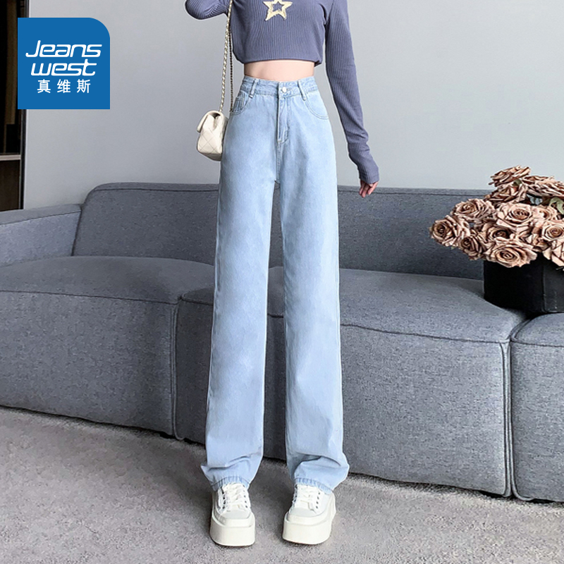 GY真维斯女装裤子2005春季新款韩系风宽松高腰显瘦小直筒牛仔裤女