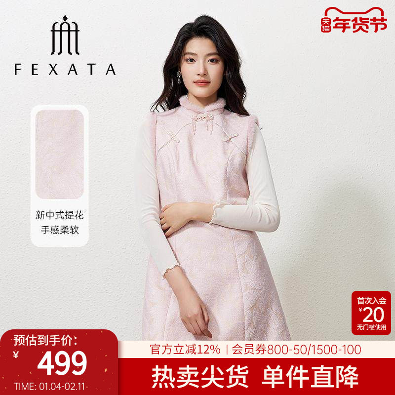 新中式温柔设计感毛领盘扣马甲旗袍连衣裙女2025冬季国风气质套装