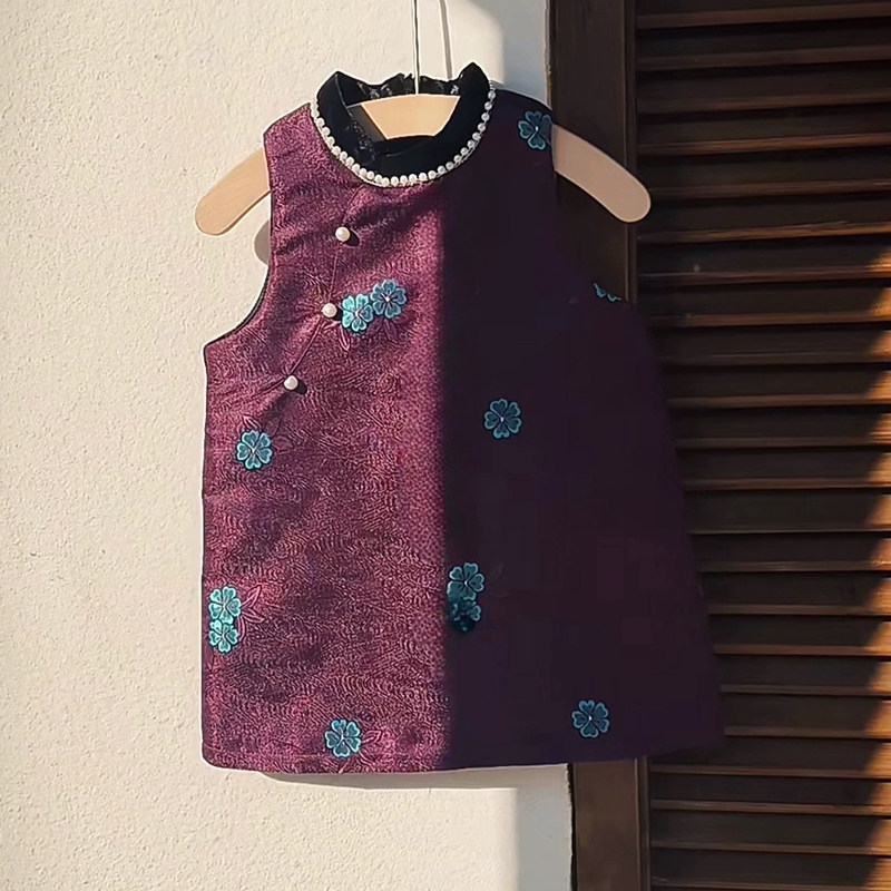 拜年服女宝新中式盘扣旗袍连衣裙2026秋冬新款儿童国风夹棉背心裙