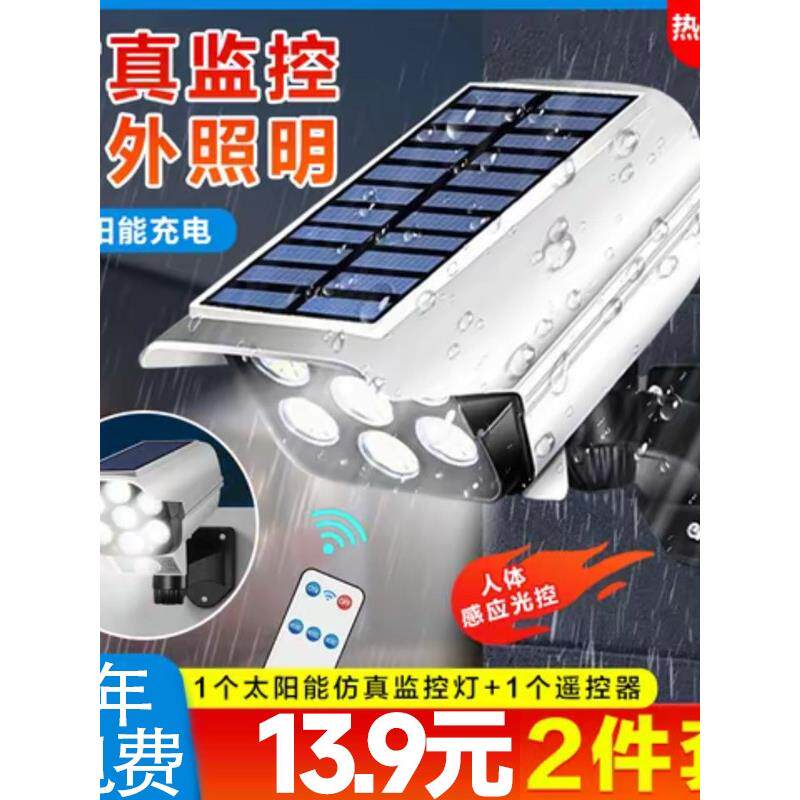 太阳能庭院灯户外模拟监控摄像头灯人体传感器墙灯家庭照明超亮路