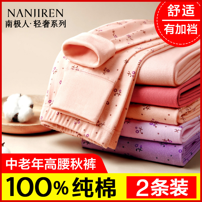 100%纯棉秋裤女保暖薄款妈妈线裤全棉毛裤中老年人大码花衬裤冬季
