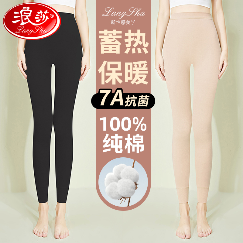浪莎高腰纯棉女士秋裤2024新款保暖裤大码7A抗菌秋冬季薄款打底裤