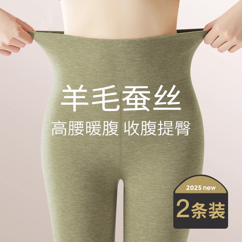 羊毛打底裤女秋冬内外穿高腰紧身双面德绒蚕丝秋裤加绒保暖棉裤子
