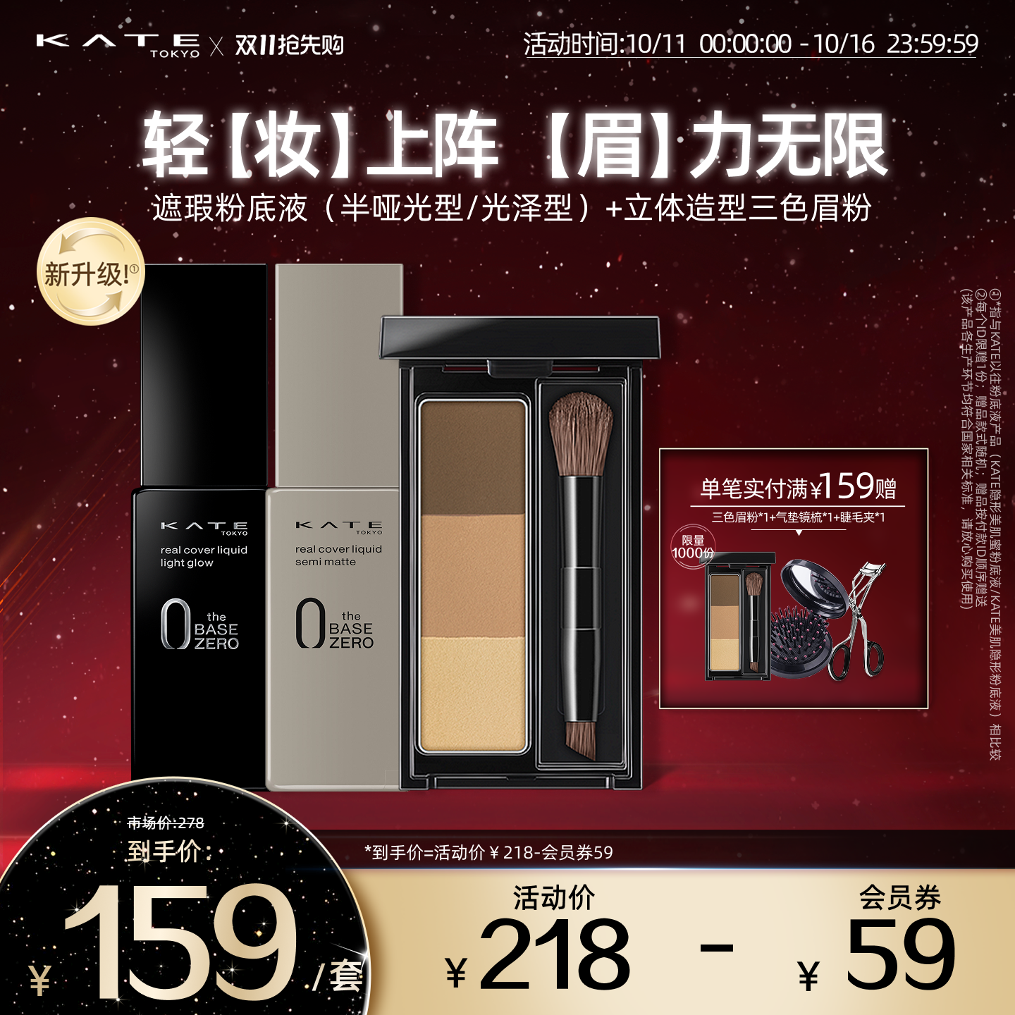 KATE/凯朵立体造型三色眉粉+持久浓细畅妆眼线液笔组合套装