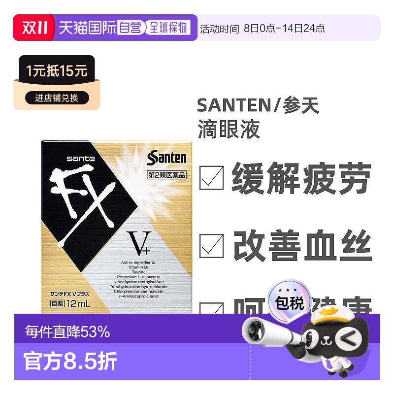 日本直邮santen参天FX-V金色装滴眼液缓解眼疲劳改善红血丝12ml