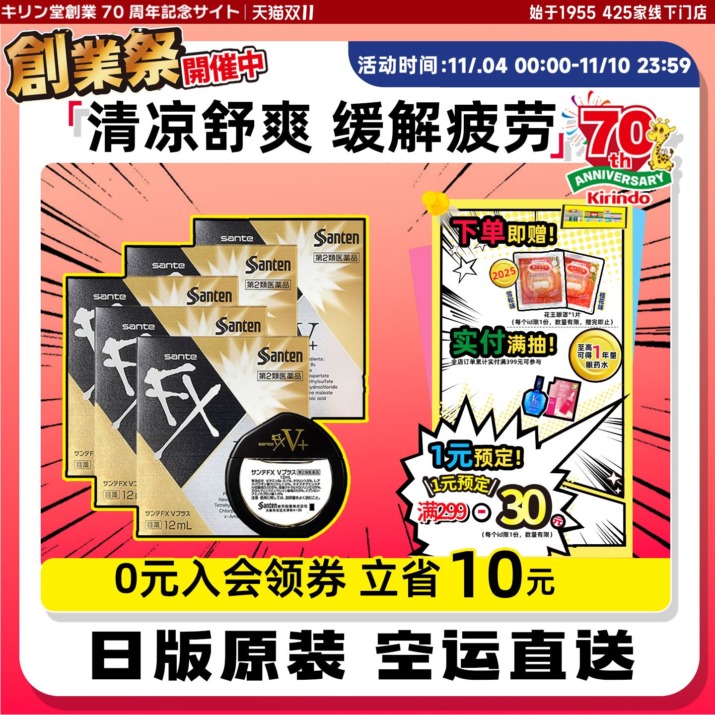 日本santen参天FX银色金色眼药水滴眼液缓解眼疲劳消炎正品原装