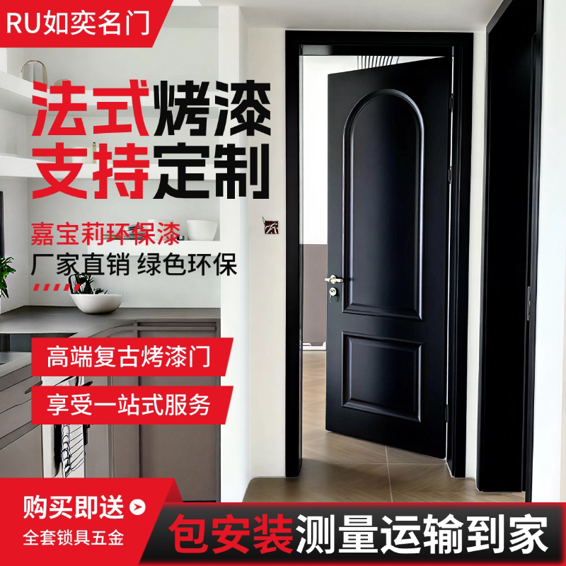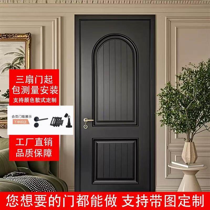 法式奶油风实木复合烤漆复古黑色木门家用室内门卫生间厨房卧室门