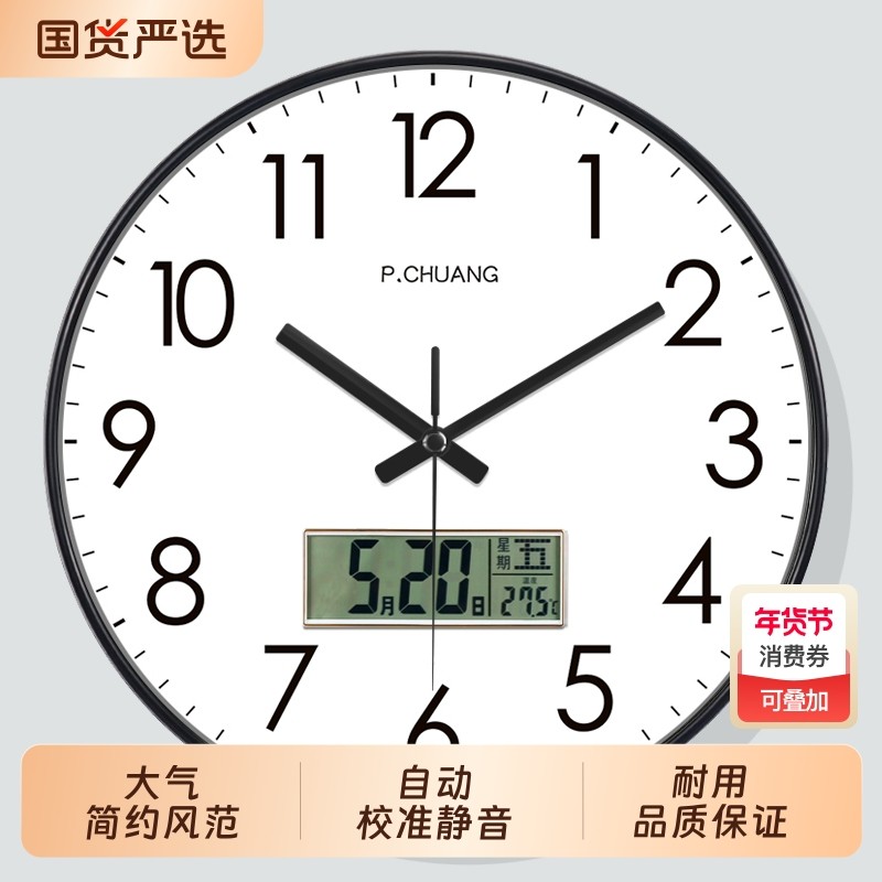 钟表挂钟客厅2025新款家用简约现代创意万年历电子时钟挂墙免打孔