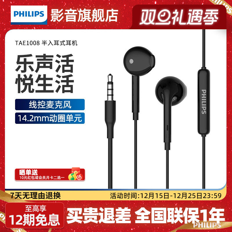 飞利浦有线耳机TAE1008适用于华为oppo小米vivo苹果耳机通话线控