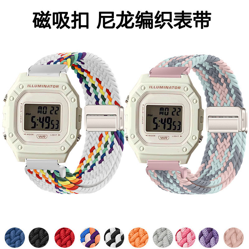 适用CASIO卡西欧手表W-218H小方块表带w217h磁吸编织透气替换腕带