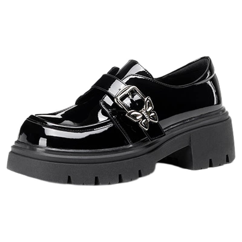 达芙妮厚底乐福鞋女2026新款春季英伦风蝴蝶搭扣小皮鞋黑色单鞋女