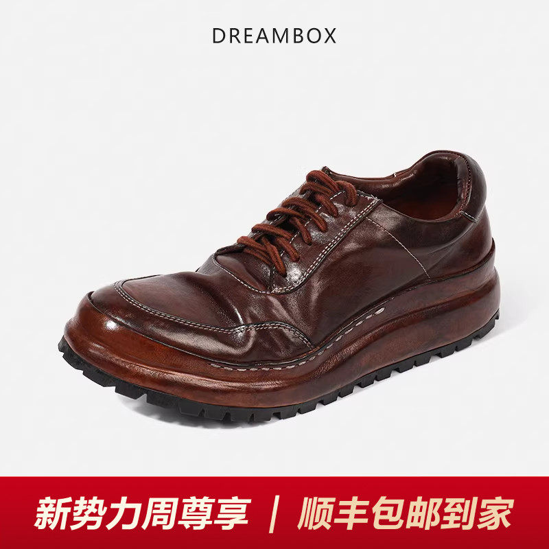 DREAMBOX钧博vibram防滑耐磨底高端老爹鞋英伦复古马皮手工皮鞋潮