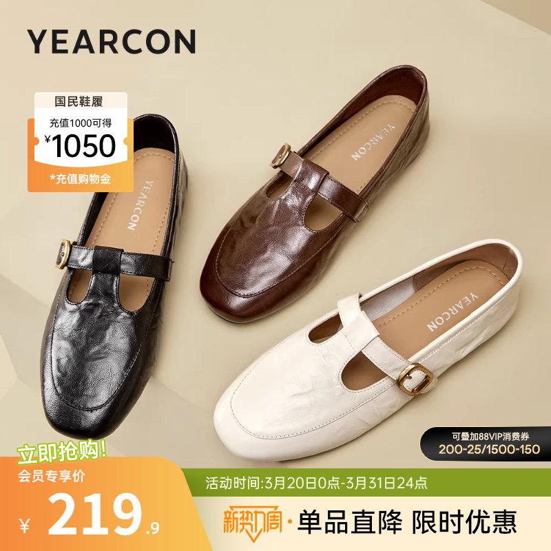 天美意英伦学院平底乐福鞋复古单鞋女一脚蹬软底小皮鞋2026春新款