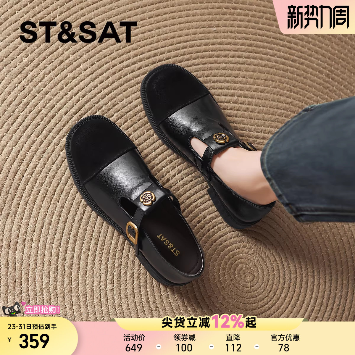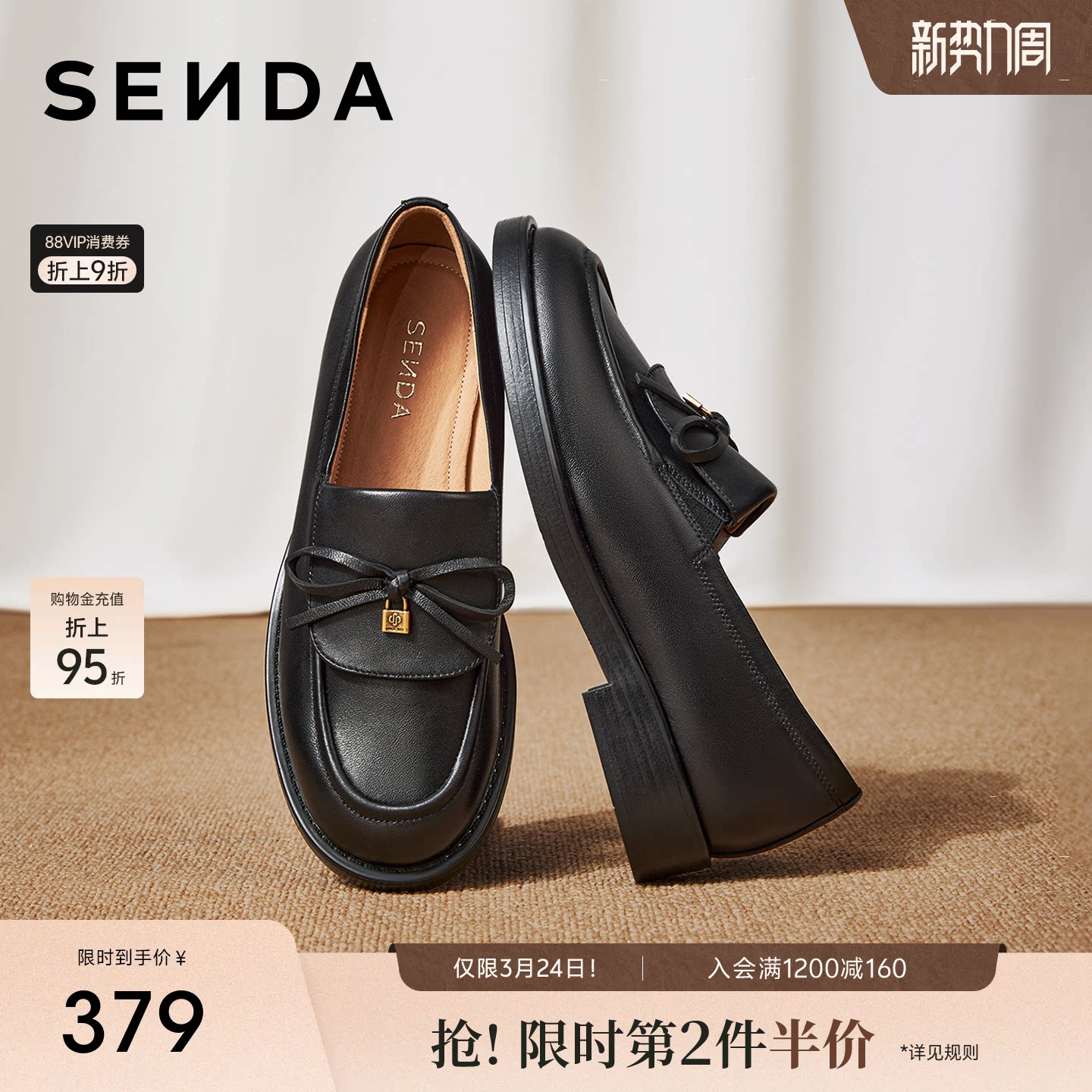 森达小夜曲羊皮厚底乐福鞋女鞋春新款真皮英伦风通勤皮鞋黑色单鞋