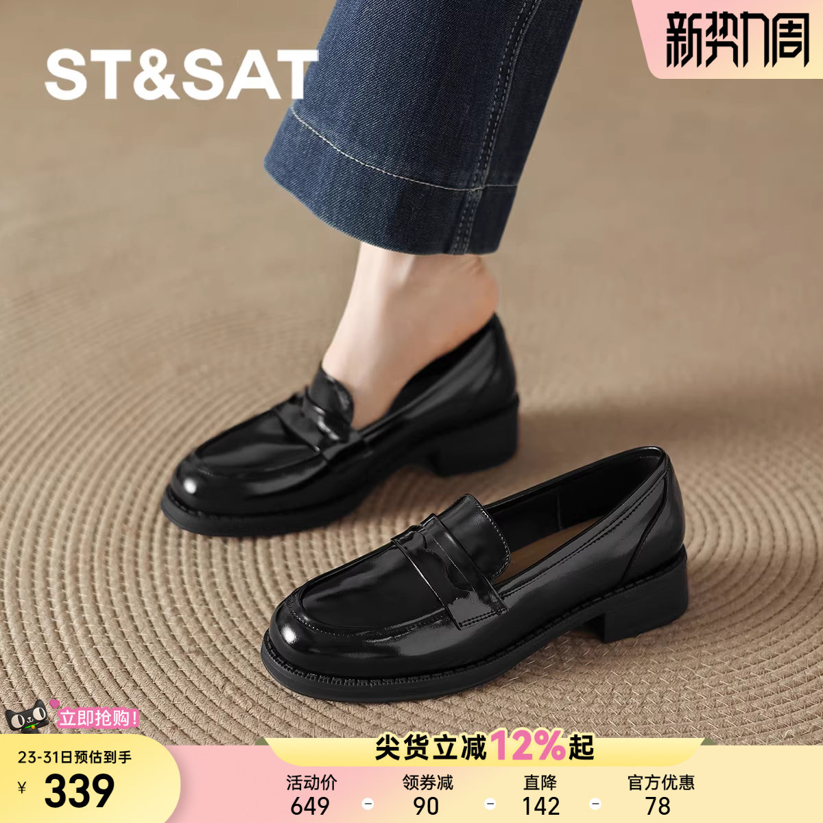 星期六英伦风小皮鞋女2025新款秋季厚底乐福鞋黑色单鞋软底豆豆鞋