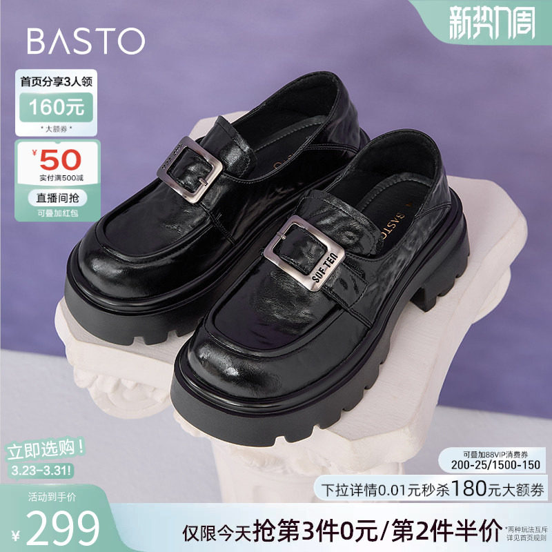 百思图春秋商场新款英伦厚底乐福鞋一脚蹬小皮鞋女单鞋M3011AM5