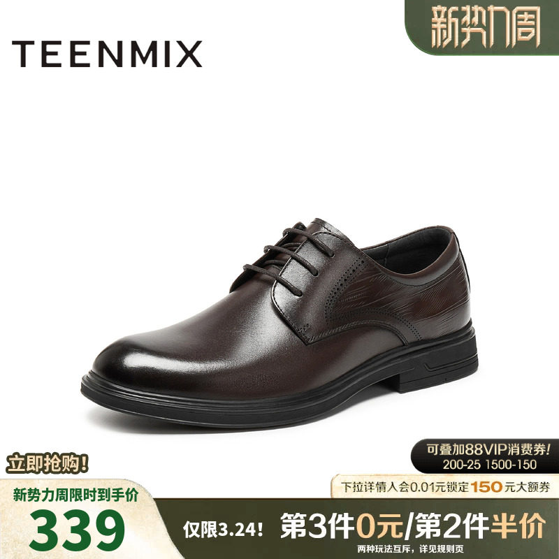 天美意正装皮鞋商务头层牛皮男鞋男士牛津西装男婚鞋2025冬季新款
