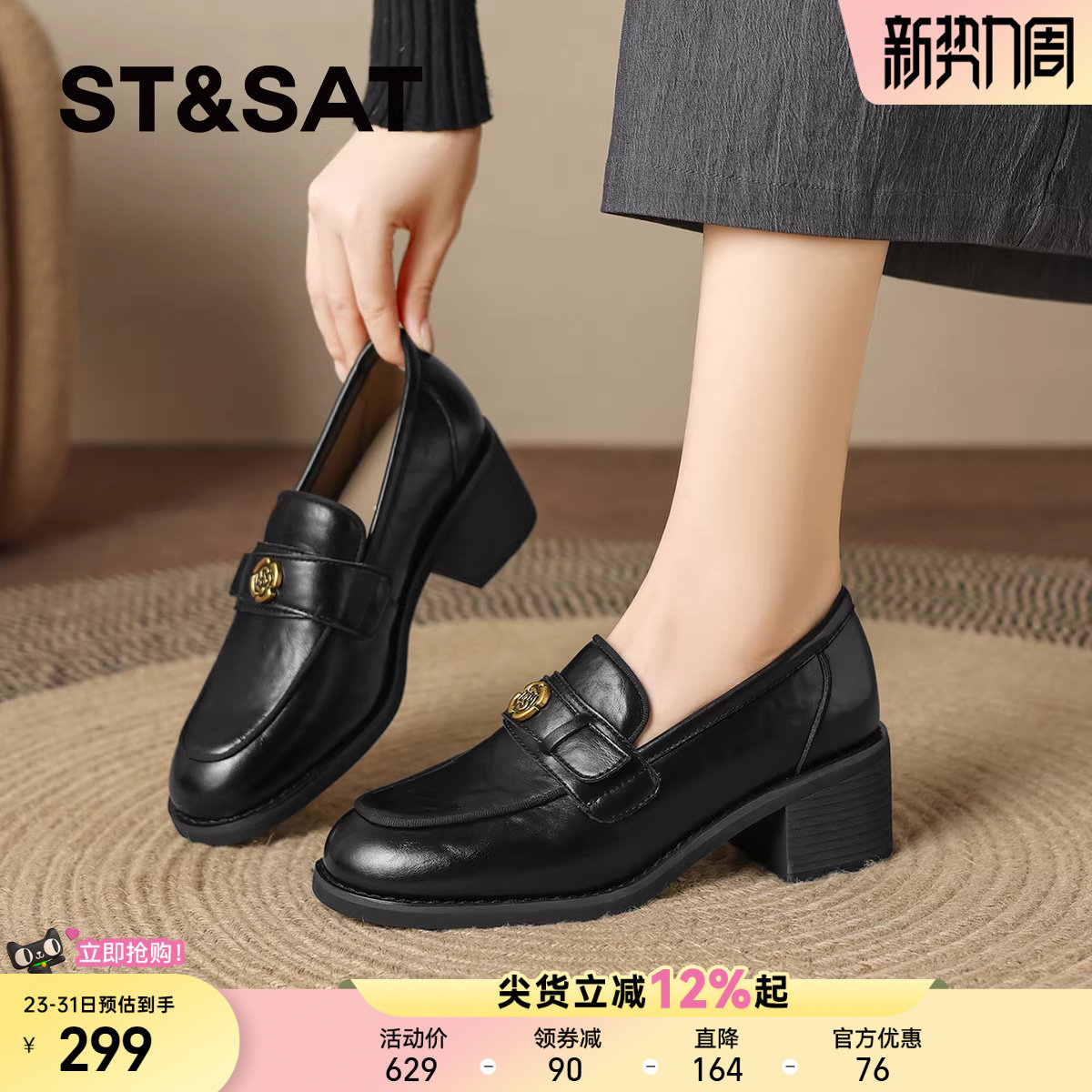 星期六厚底乐福鞋女款黑色皮鞋女通勤粗跟单鞋女鞋子高跟鞋玛丽珍