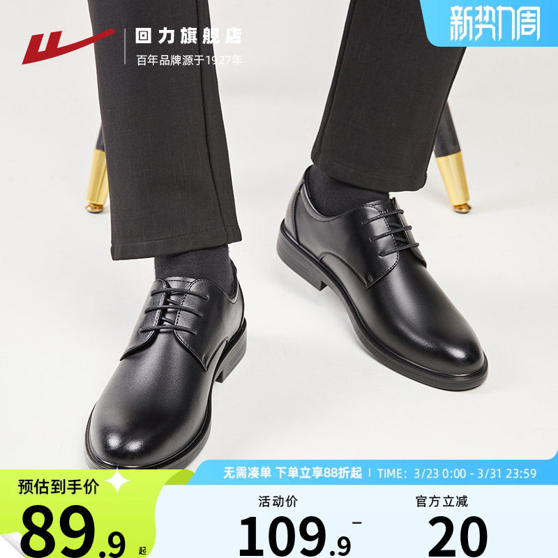 回力皮鞋男鞋春商务尖头皮鞋结婚伴郎鞋子年轻人黑色软底男士皮鞋