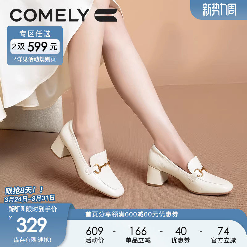 康莉comely乐福鞋女真皮厚底一脚蹬单鞋小皮鞋 159元起不定时更新