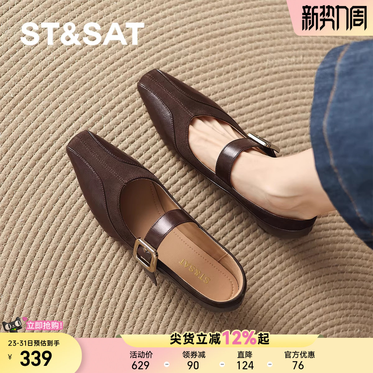 星期六羊皮真皮鞋棕色玛丽珍小单鞋法式女款春季气质女鞋子配裙子