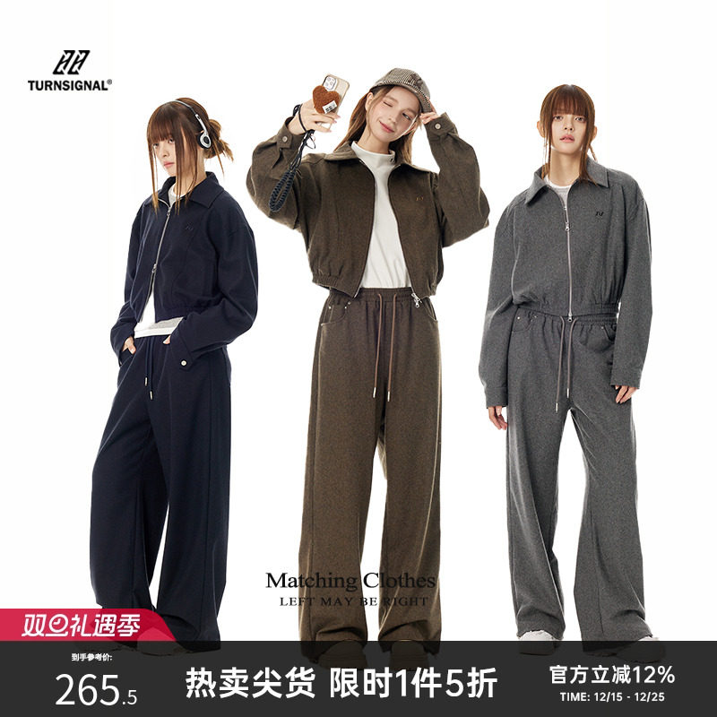 TurnSignal潮牌短款外套阔腿裤套装女秋冬2025新款时尚休闲两件套