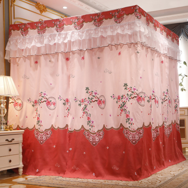 2025金辉新款床帘可四柱不锈钢支架遮光加厚布料水洗棉两用床幔家
