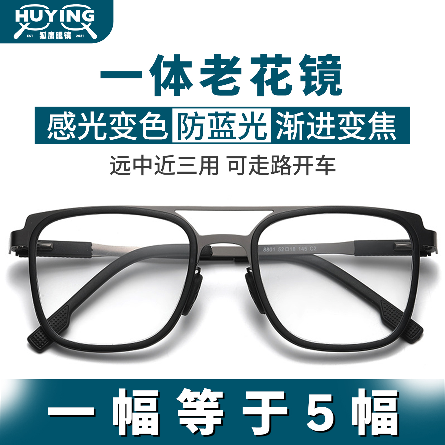 看远看近能开车老花镜男远近两用一体高清渐进多焦点防蓝光眼镜配