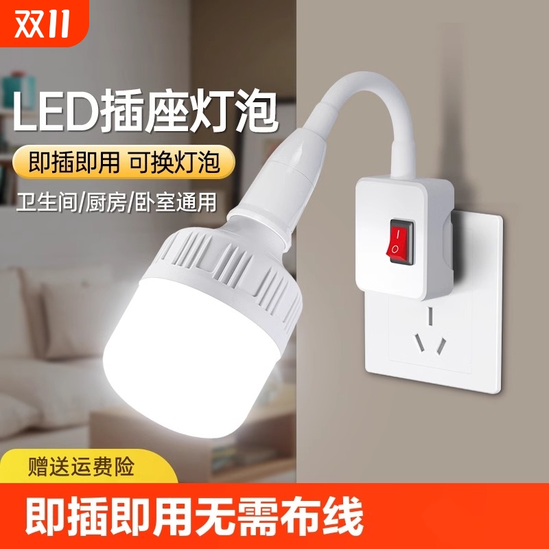 插座灯泡直插式带开关插电灯led家用超亮客厅节能插头灯卫生间
