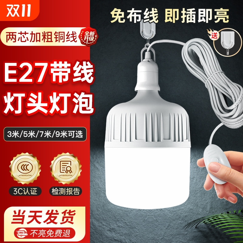LED超亮节能带线E27灯泡插电灯家用卧室床插头灯悬吊带开关插座灯