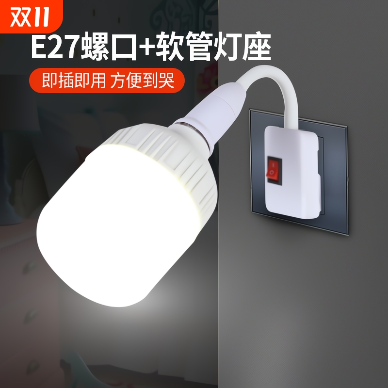 LED灯泡插座灯E27带插头超亮照明灯节能灯螺口灯座灯头带开关家用