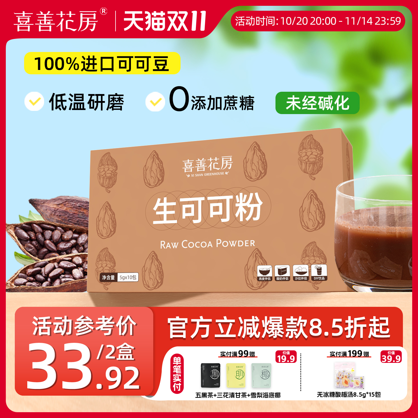 喜善花房生可可粉不加糖特浓可可粉冲饮独立装可可粉未碱化可可粉