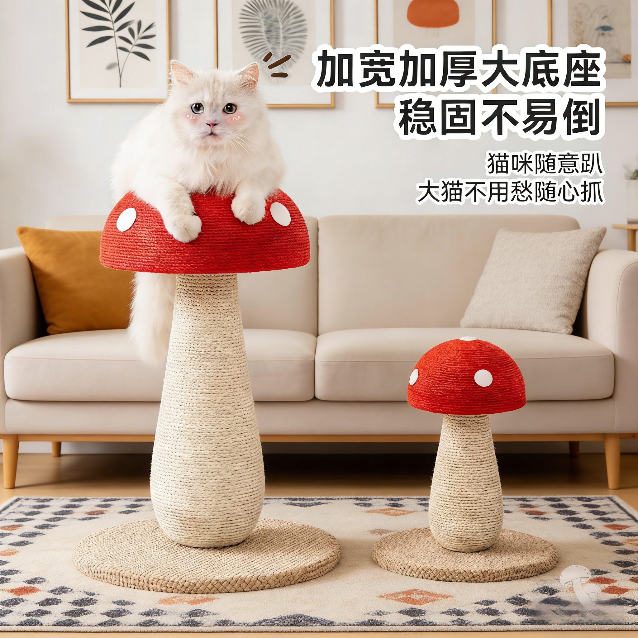 红蘑菇猫抓板剑麻耐抓不掉屑加大号立式猫抓柱猫爬架麻绳磨爪玩具