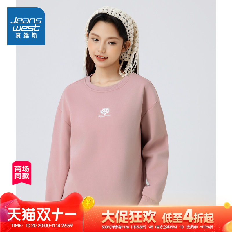佐丹奴卫衣女秋冬新款双面布小动物刺绣宽松圆领套头上衣05325842
